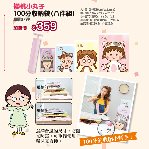 11/10-11/14開賣》櫻桃小丸子100分收納袋