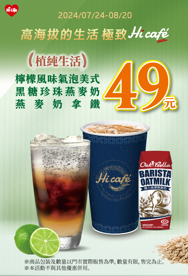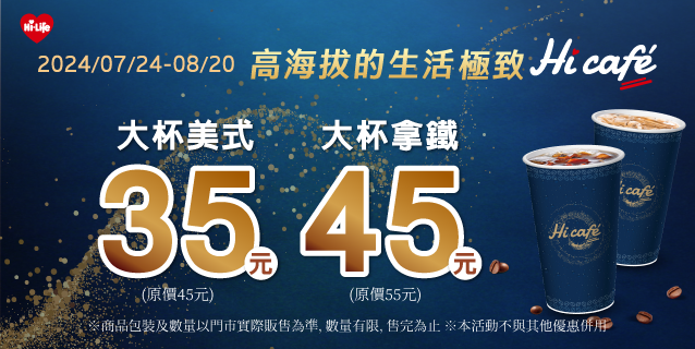 萊爾富Hi Cafe高海拔的生活極致,大杯美式/拿鐵省15元,植純生活氣泡美式/燕麥奶飲品49元