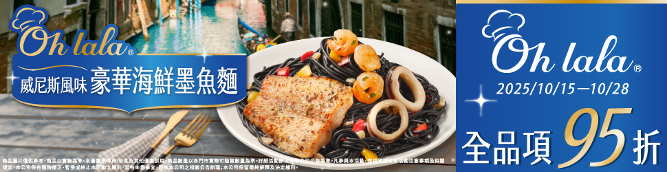 - 威尼斯風味豪華海鮮墨魚麵 新上市