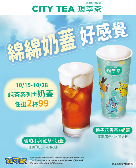 CITY TEA 綿綿奶蓋好感覺!純茶系列+奶蓋 任選2杯99元
