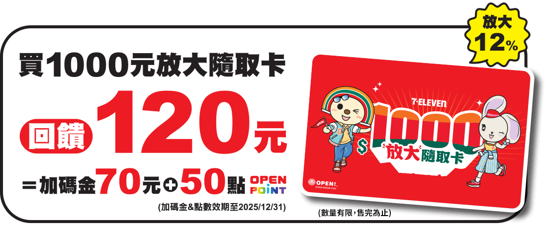 7-11萬元普發加碼優惠放大隨取卡回饋120元
