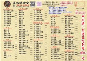嘉味道食堂包含日式料理吃到飽,和食料理等餐點品項、菜單圖片、菜單價位、兒童價錢、餐期時間,嘉味道食堂Facebook、訂位,電話、地址等資訊