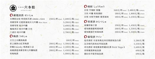 六本松菜單價格