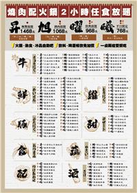 一旭燒肉包含任食放題,昇極饗放題、旭酒肉放題、曜經典放題、曦平日限定等餐點品項、菜單圖片、菜單價位、兒童價錢、餐期時間,一旭燒肉Facebook、訂位,電話、地址等資訊