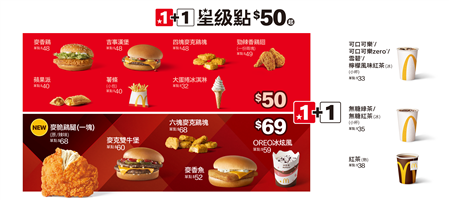 麥當勞包含漢堡、沙拉、極選系列、鷄塊與麥脆鷄腿、McCafé、飲料、甜品與點心、早餐、其他、期間限定、超值全餐、1+1星級點、Happy Meal、麥當勞分享盒、早餐配餐、新年限定分享盒、2026霹靂甜心卡等餐點品項、菜單價格,麥當勞官網、優惠活動、門市地址、營養資訊、Menu、維基百科、Facebook、24小時歡樂送等資訊