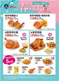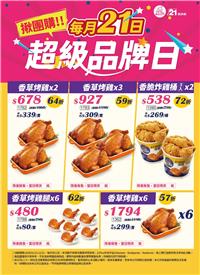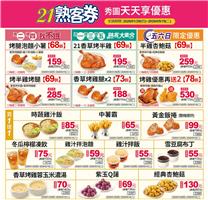 21風味館包含烤炸專區、單點美味、冷熱飲、隨選餐、人氣速配餐、歡樂分享餐、每逢1日吃烤雞、抗通膨有省餐、21熟客券、春の大賞等餐點品項、菜單價格,21風味館官網、優惠活動、DM、門市地址、營養資訊、Facebook等資訊
